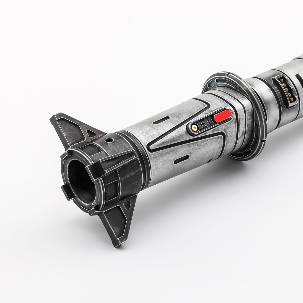 Commanding respect and admiration, our Baylan saber is a homage to the one wielded by Baylan Skoll. This saber is truly one of a kind, with its custom blade emitter, ergonomic hand grip, and complex hilt design all combining to form something masterful. In addition to its unique design, the saber utilizes an aluminum alloy hilt and polycarbonate blade to make it both durable and functional.