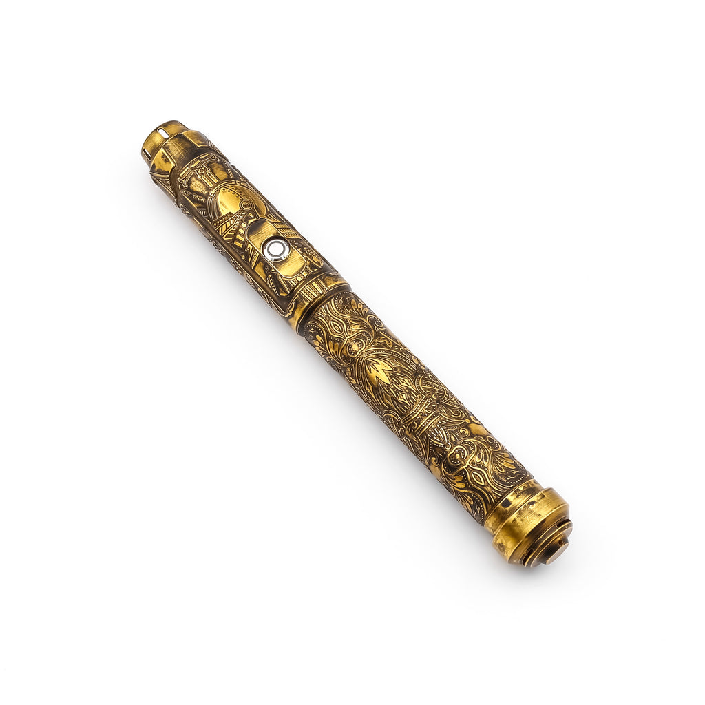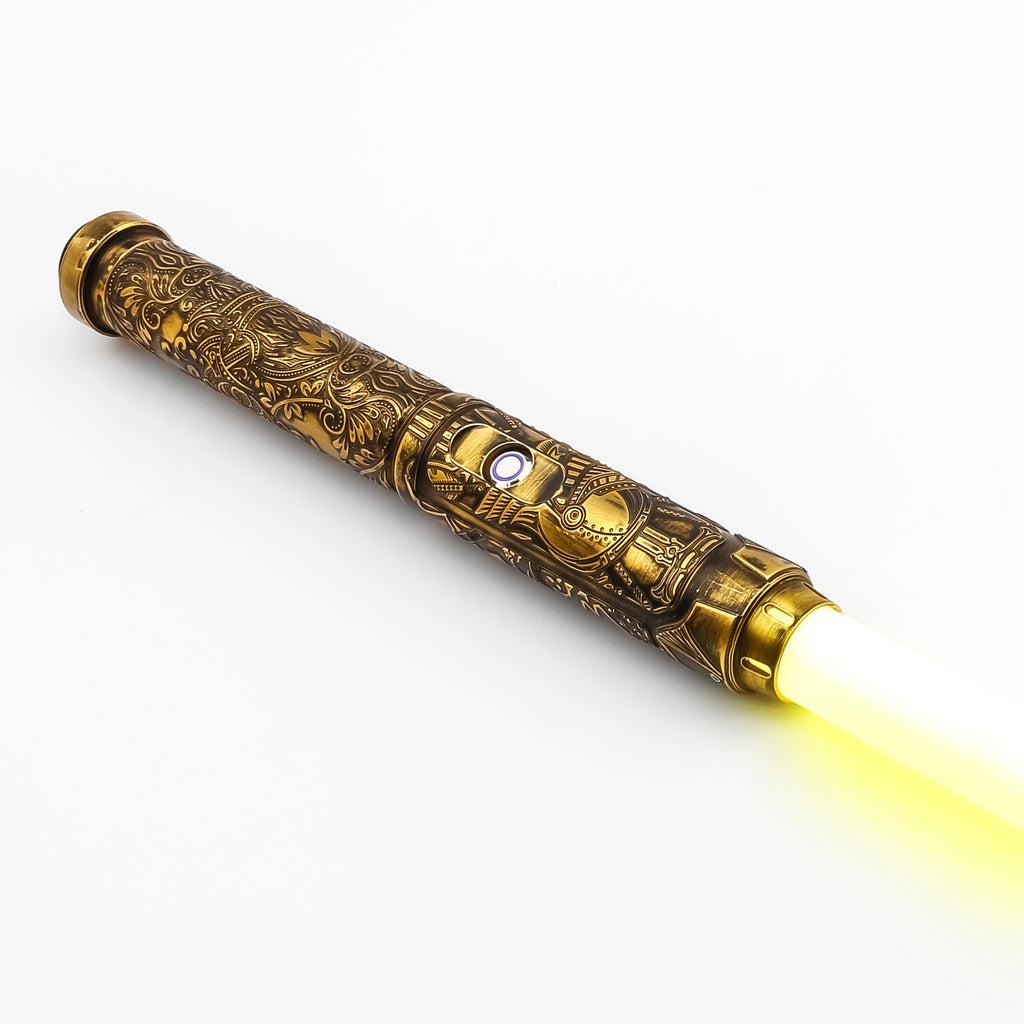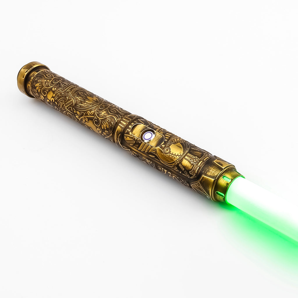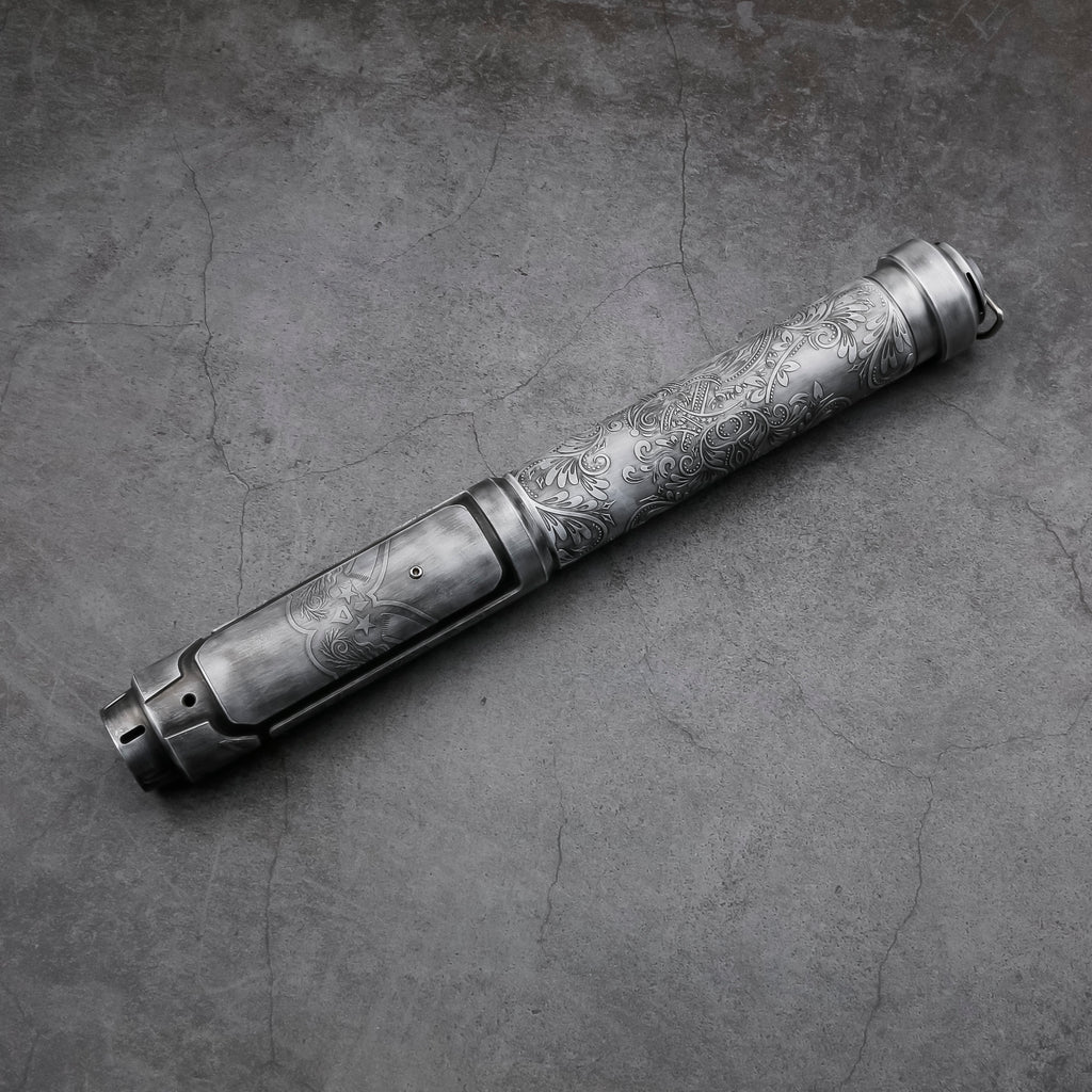 Sleek and agile, Dominion V2 is truly a reliable saber. This saber boasts an exquisite and ornate hilt, as well as a durable polycarbonate blade, visual and sound effects, and color changing capabilities.