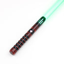 These sabers include all the features that are standard to our sabers, such as smooth swing, flash-on-clash, lighting effects, motion control, changeable blade colors and soundfonts (16 soundfonts included), and much more. RGB Baselit sabers are a great choice for heavy dueling.