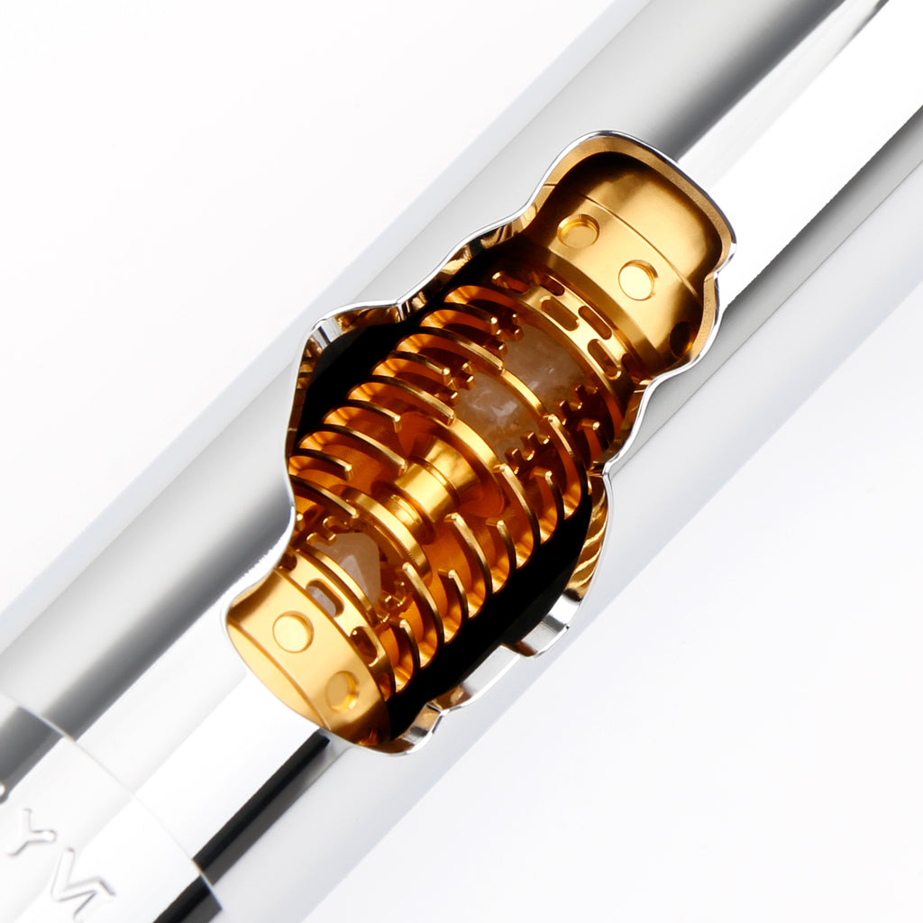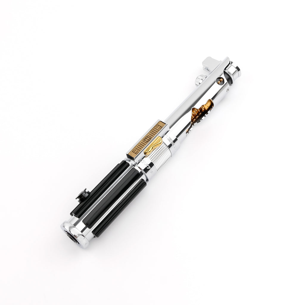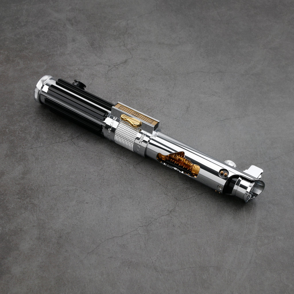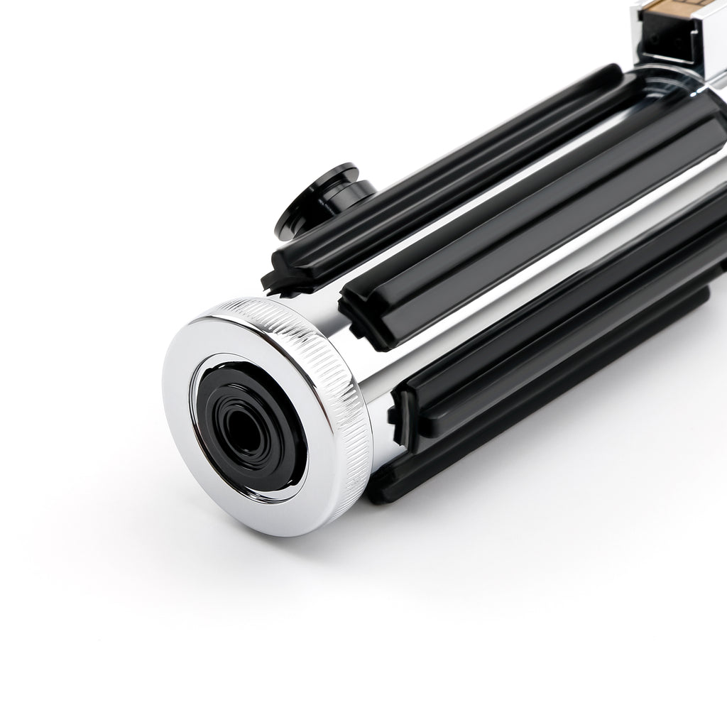 A specialized version of Anakin's saber, Fallen Knight Anakin utilizes a unique open metal crystal chamber that showcases two spinning crystals that glow in their own hues. The crystal chamber is able to rotate, creating a vivid and unparalleled display of intricacy and innovation. The saber is completely functional as well, boasting an aluminum alloy hilt and stable blade emitter, allowing for precise movements and maximum maneuverability.