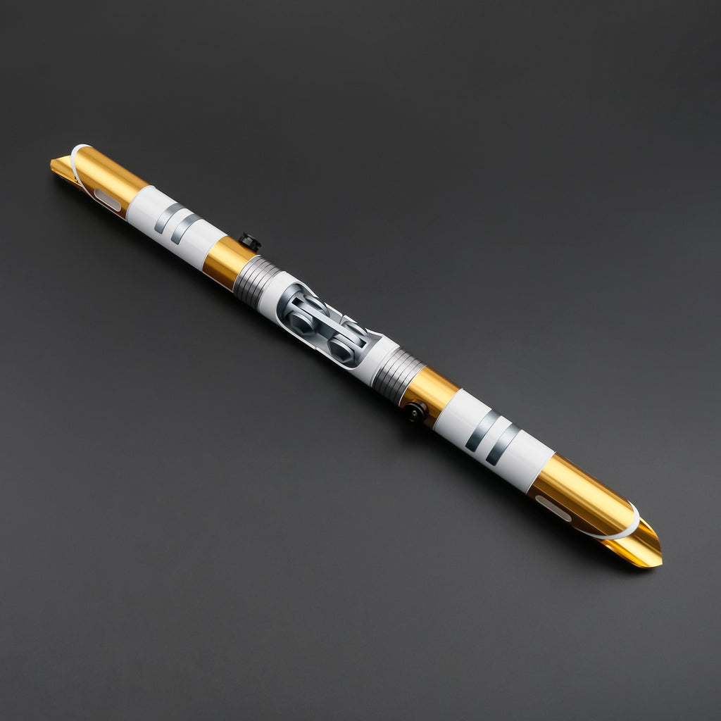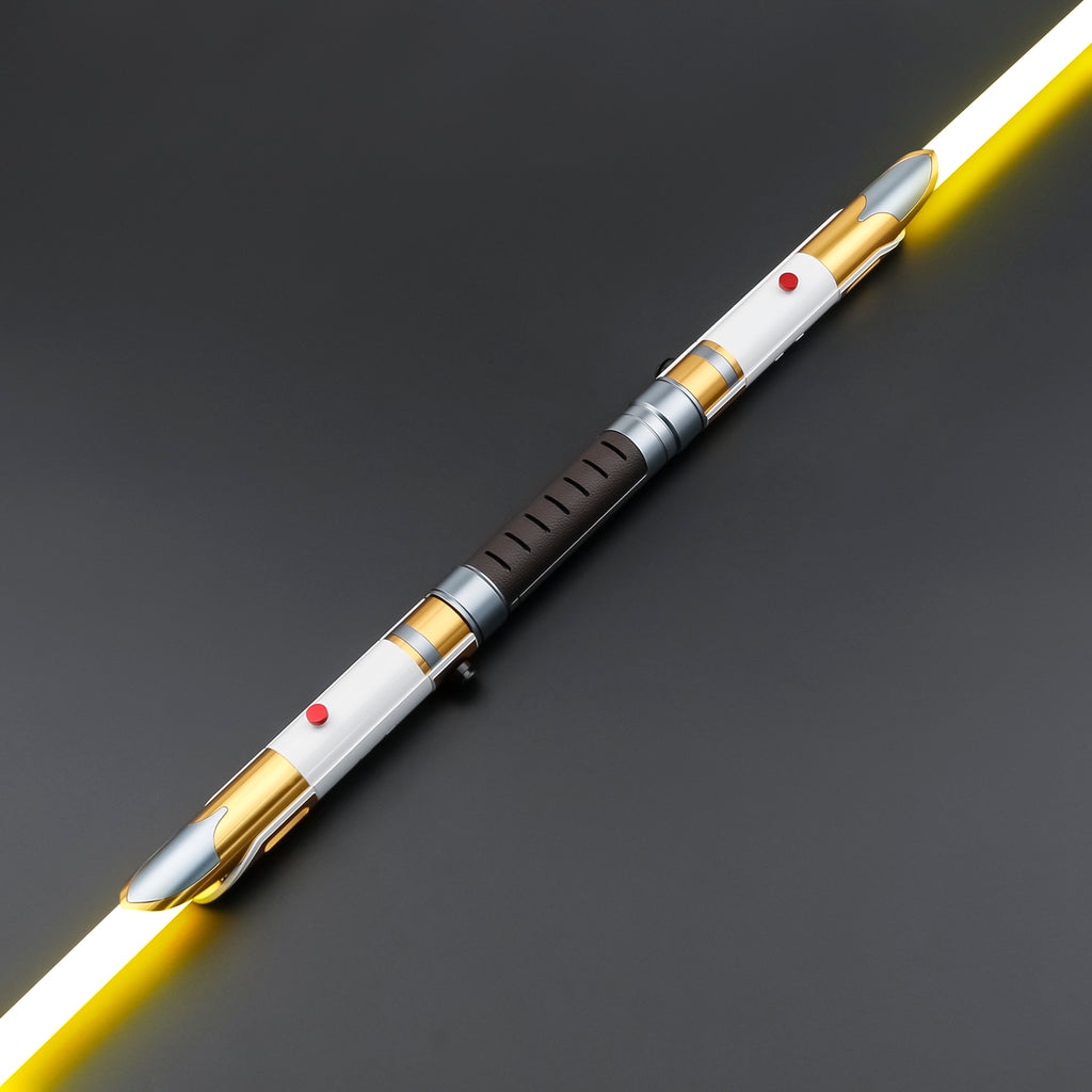 Our Guard saber is truly unique, comprising of two hilts that are not only able to connect to form a saberstaff, but are also collapsible along a hinge. Each hilt is made out of high quality aluminum alloy, and comes with a durable polycarbonate blade, visual and sound effects, and color changing capabilities.